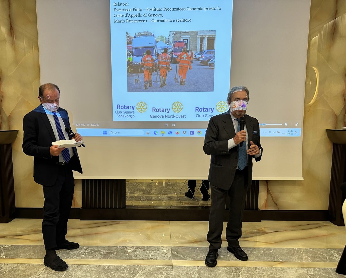 La riunione conviviale ha avuto come ospiti il Sostituto Procuratore Generale presso la Corte d’Appello di Genova, dottor Francesco Pinto e il giornalista e scrittore Mario Paternostro. Interclub tra RC Genova San Giorgio, RC Genova Est e RC Genova Nord Ovest.
